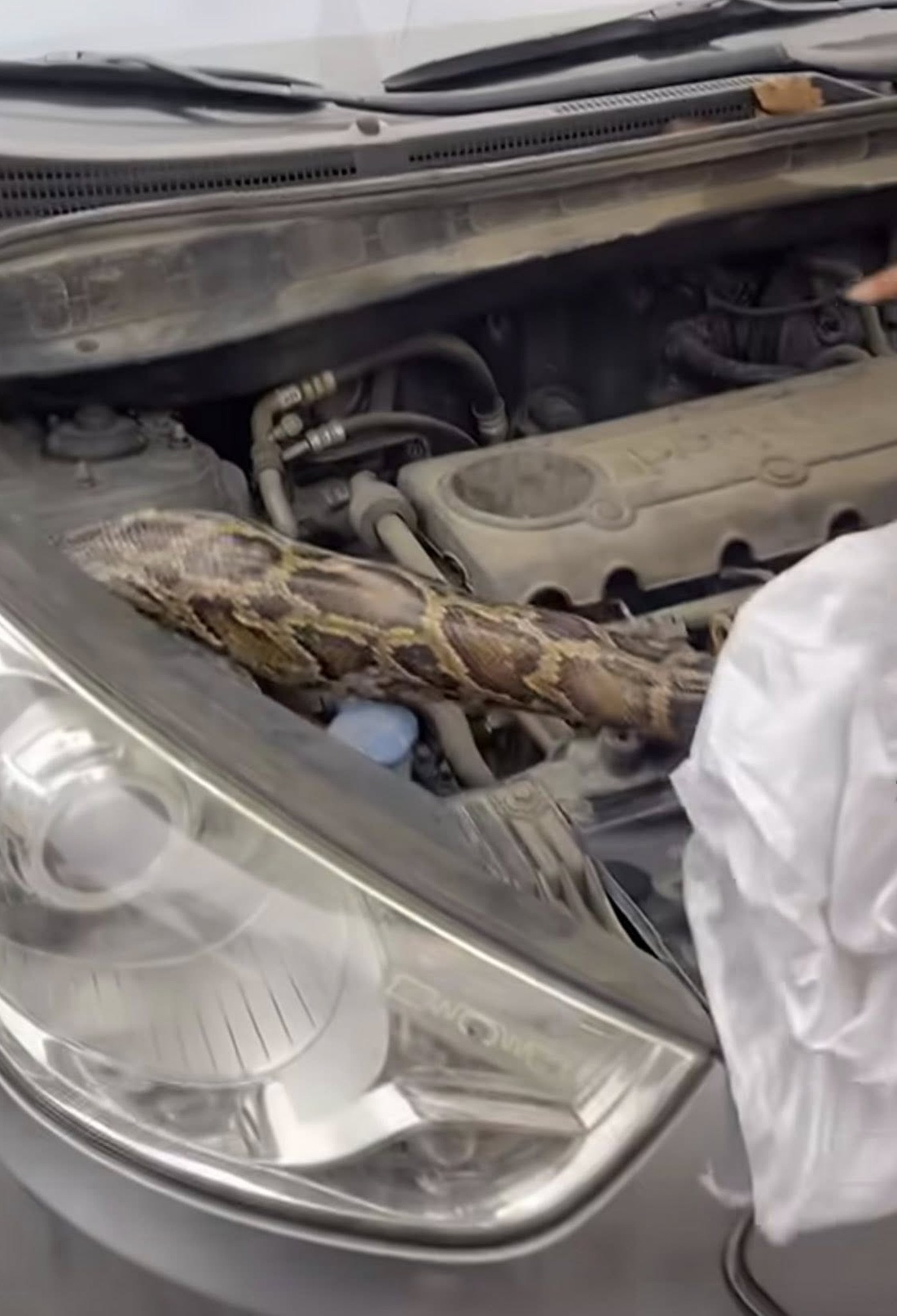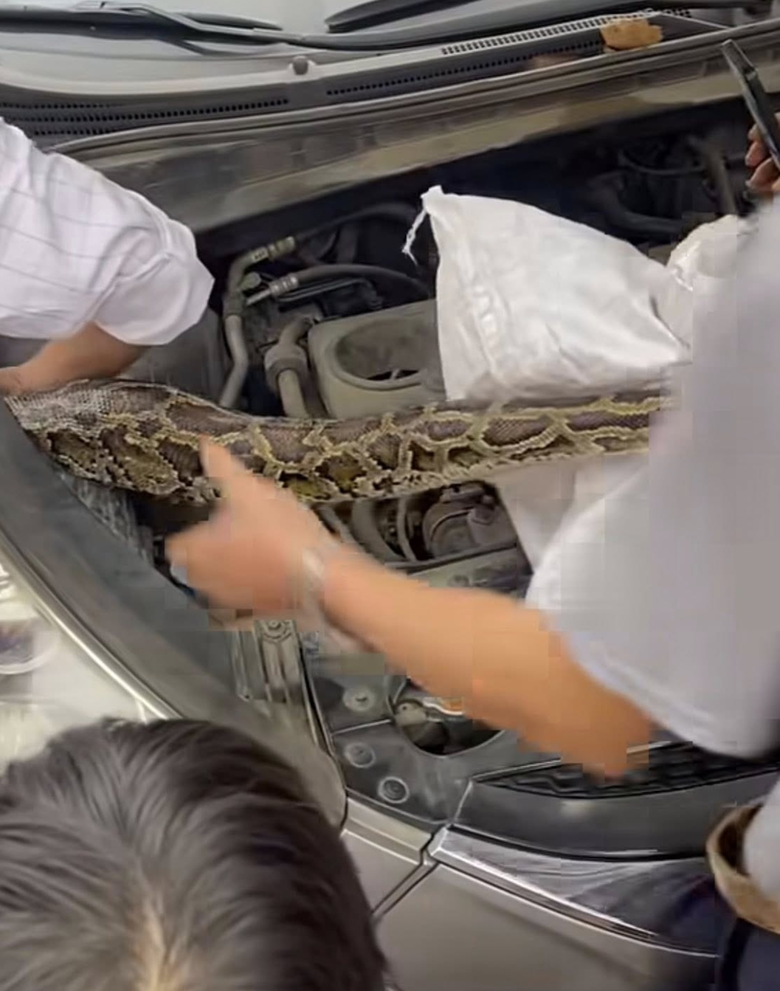Theo một số người dân, trước khi sự việc xảy ra, chủ xe ô tô mới lái xe từ trong rừng ra. Có thể trước đó con trăn đã chui vào khoang động cơ ẩn nấp.