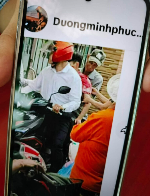 Cháu học sinh vừa định đi xe đạp sang đường thì xe máy phóng nhanh lao tới làm văng xe đạp ra xa, May tay đã buuoong ra